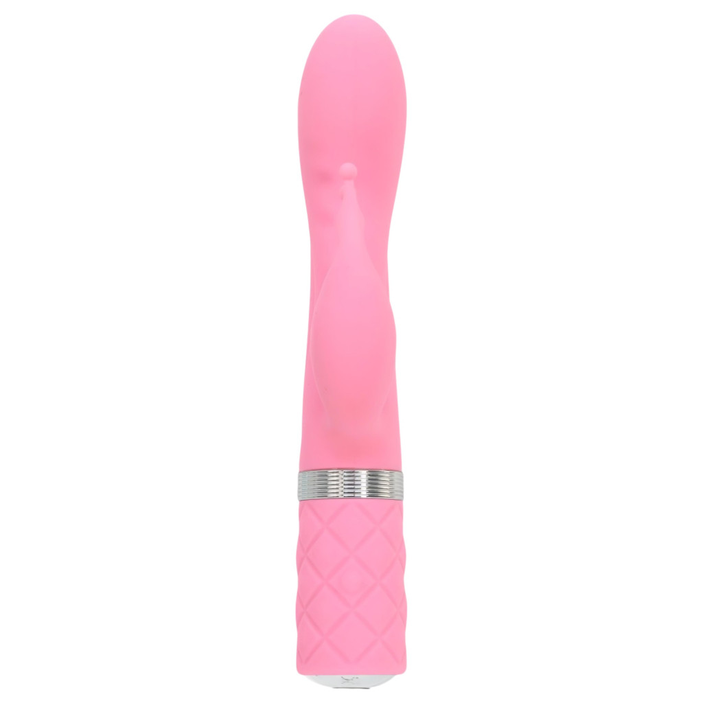 Tulajdonságok:-dupla élvezet-csikló- és G-pont stimuláció egyszerre-luxus kivitelezés-letisztult dizájn-bőrbarát szilikon anyag-hajlított forma-hangsúlyos fej-rezgő, csiklóizgató kar-USB-ről újratölthető, Li-ionos akkumulátor-párnázott, kényelmes fogást adó nyél-Swarovski kristályos vezérlő-egyszerű egygombos vezérlés-gombnyomásra fokozatosan erősödő, extra erős rezgés-két nagy teljesítményű, de csendes motor-billentyűzár-teljes hossz: 21,5cm-behelyezhető hossz: 11,8cm-átmérő: 3,7cm-pink színAnyaga: ABS, Szilikon (EU-rendeletnek megfelelő, phthalát-mentes).A töltéshez szükséges USB-kábelt a csomag tartalmazza.TIPP: a termék síkosításához kizárólag vízbázisú síkosító használata javasolt.
