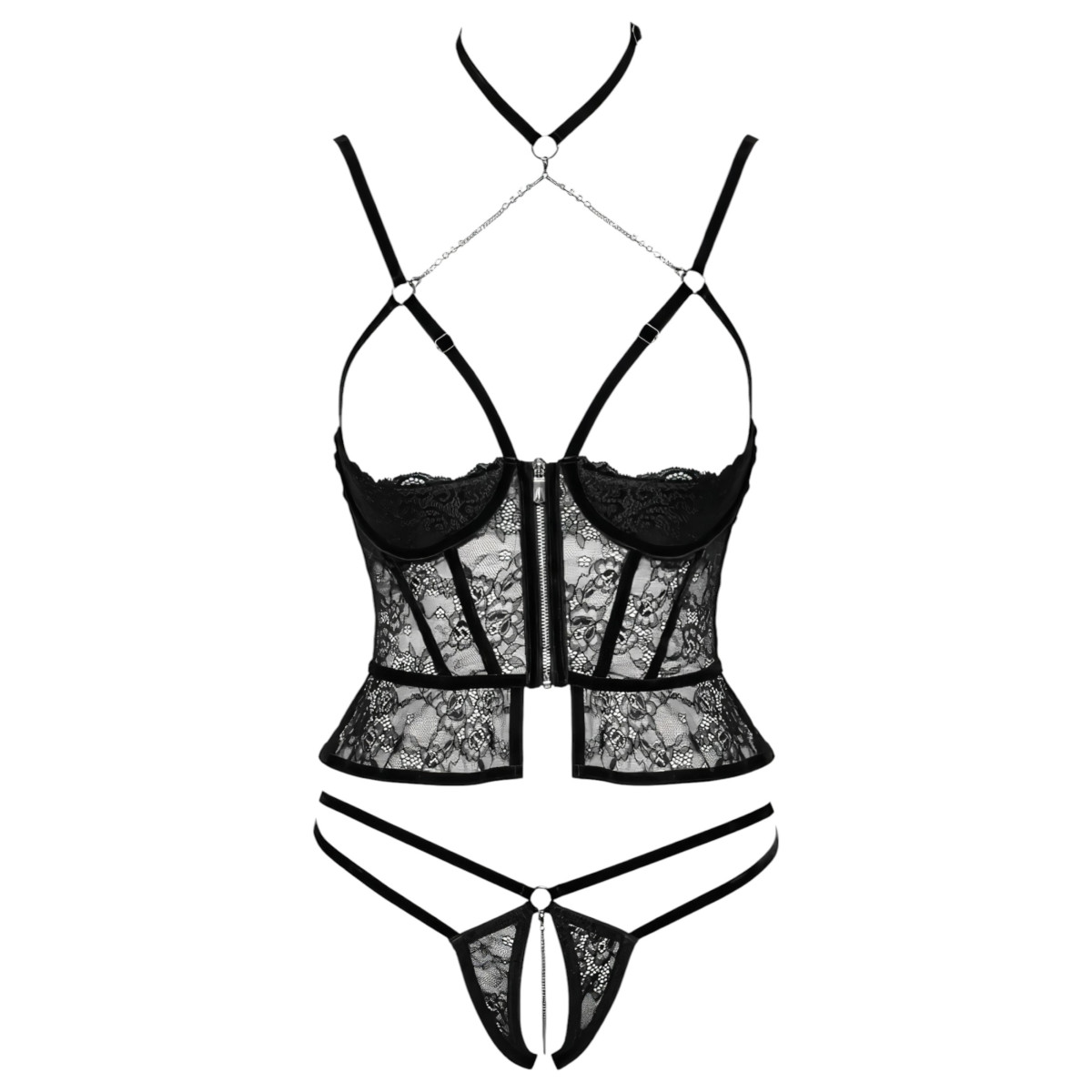 Abierta Fina - nyitott tanga és fűző (fekete)