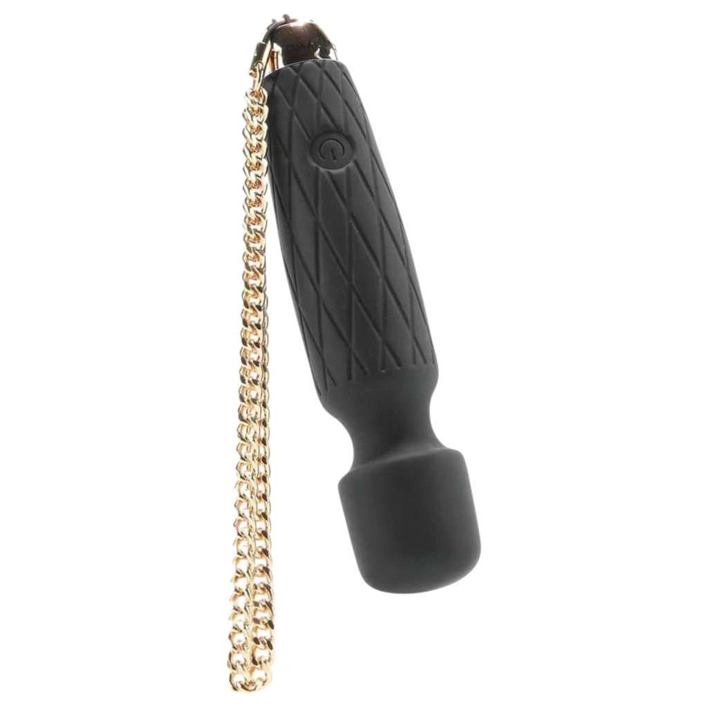 Bodywand deluxe minőségű masszírozó vibrátor!A LEGTÖKÉLETESEBB KEZDŐ VIBRÁTOR!Tökéletesen kézbe simuló, szolid méretű testben, extra nagy erő, mellyel végigszánthatod, végigmasszírozhatod kedvesed minden porcikáját!Egy igazi kis rezgő kéz, mellyel kedvesedet nem csak ellazíthatod, de őrületes vágyra is gerjesztheted!Dizájn kivitelezésű, extra erős rezgésű mini masszázsgép, beépített akkumulátorral, nagy teljesítményű, de diszkréten halk motorral, melynek vibrációja 7 különböző ritmusban vezérelhető egyetlen gomb megnyomásával.Használati Tippek:Testmasszázshoz: izmok ellazításáhozErotikus masszázshoz, előjátékhoz: az intim zónák bizsergetéséreHüvelyi vibrátorkéntAktus közben: a csiklót, mellbimbókat, vagy a heréket bizsergetveMaximálisan bőrbarát anyagának köszönhetően az érzékenyek, allergiára hajlamosak számára is tökéletes választás. Bársonyos tapintású, rugalmas, mozgatható szilikon fejjel látták el, valamint időtálló, stramm, szilikonnal bevont, bársonyos tapintású, műanyag karral.Extra ráadás, a rozé-arany színű, exkluzív, fém csuklópánt, mely karláncként is használható.Vezérlés:Az egyetlen vezérlő gombot hosszan lenyomva tartva kapcsolható be- és ki a rezgés. A gomb egyszeri lenyomásával váltogathatunk az egyes rezgésmódok között.Vízállóság:A termék cseppálló, csak mérsékelten vízálló, így egyszerűen tisztítható, zuhany alatt használható, víz alá azonban nem meríthető.Tulajdonságok:-dizájn, mikrofon forma-bőrbarát anyag-bársonyos, rugalmas fej-extra erős rezgés-nagy teljesítmény-halk működés-egyszerű, egygombos vezérlés-7 rezgésmód-USB-ről újratölthető akkumulátor-cseppálló kialakítás-időtálló anyagok-kompakt méret-teljes hossz (vibrátor): 14cm-lánc hossza: 15cm (levehető)-fejméret: 3 x 2,8cm-fekete színbenAnyaga: ABS, bőrbarát Szilikon (EU-rendeletnek megfelelő, phthalát-mentes).A szett tartalma:1db Exkluzív masszírozó vibrátor1db USB-kábel1db karkötőTIPP: a termék síkosításához kizárólag vízbázisú síkosító használata javasolt.Tisztítási javaslat:Kímélő szappanos, langyos vízzel alaposan át kell mosni, majd leöblíteni és hagyni megszáradni. Ajánlott: Speciális tisztítószer használata (06302500000) - külön rendelhető.