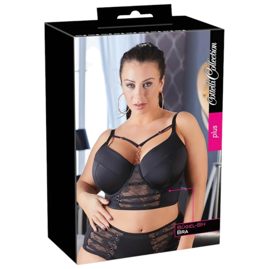 / Cottelli Plus Size - pántos-csipkés melltartó (fekete)
