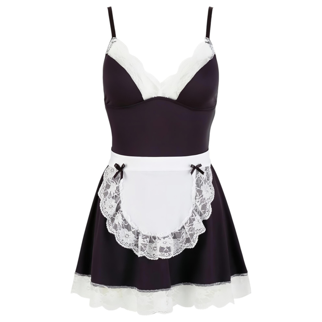 Fehér-fekete színekben pompázó miniruha.Kényelmes, ruganyos anyagból.A kebleket kiemelő varrással, A-vonalú szoknyarésszel.Szexi, mély, áttetsző, virágmintás csipkével díszített dekoltázzsal.Vékony, állítható vállpántokkal.A fehér csipke a ruha alsó szegélyén is visszaköszön.A csomag tartalma:1db szobalány ruha1db fehér csipkés kis kötényAnyaga: 95% Polyester, 5% Elasthan.A csipke anyaga: 100% Polyamid.