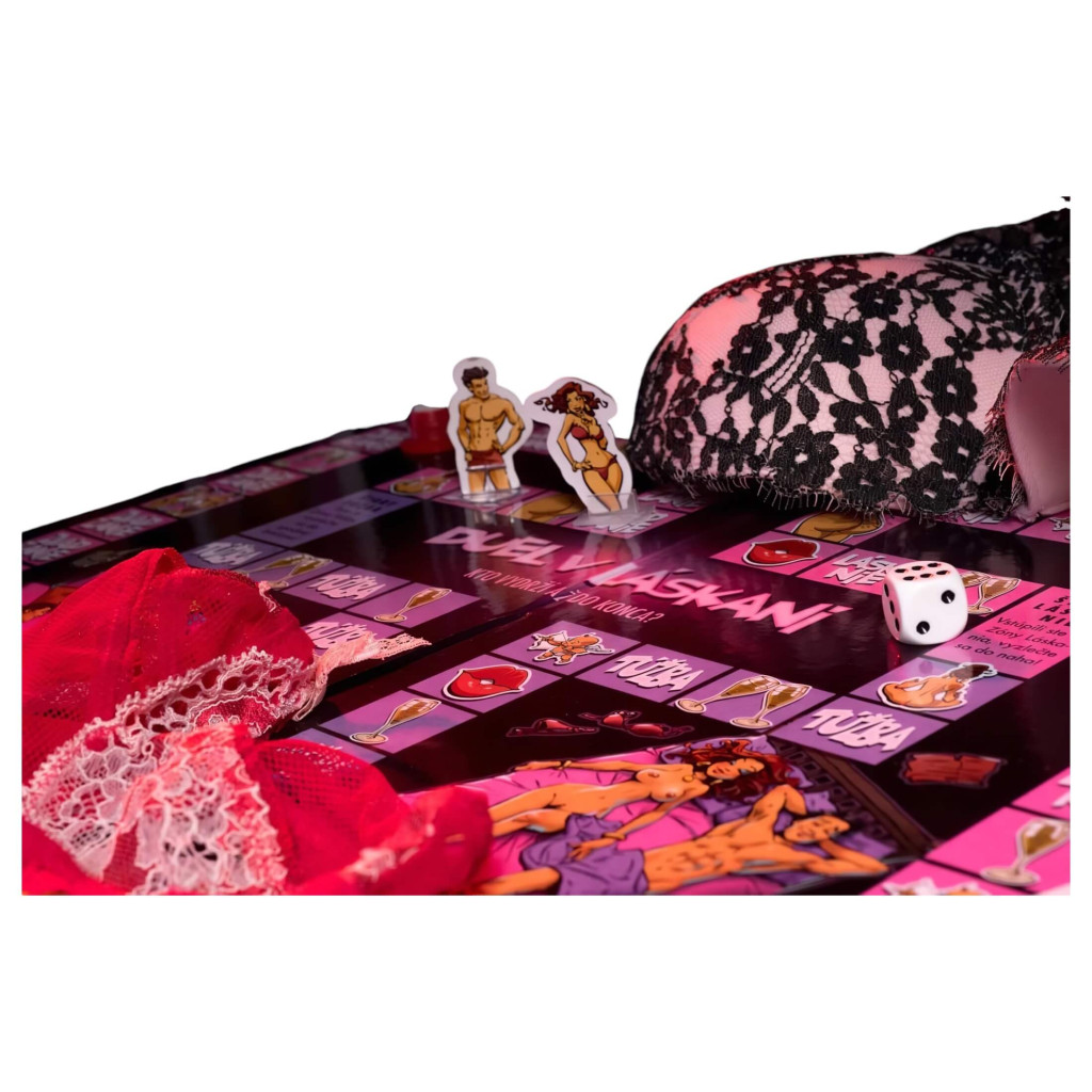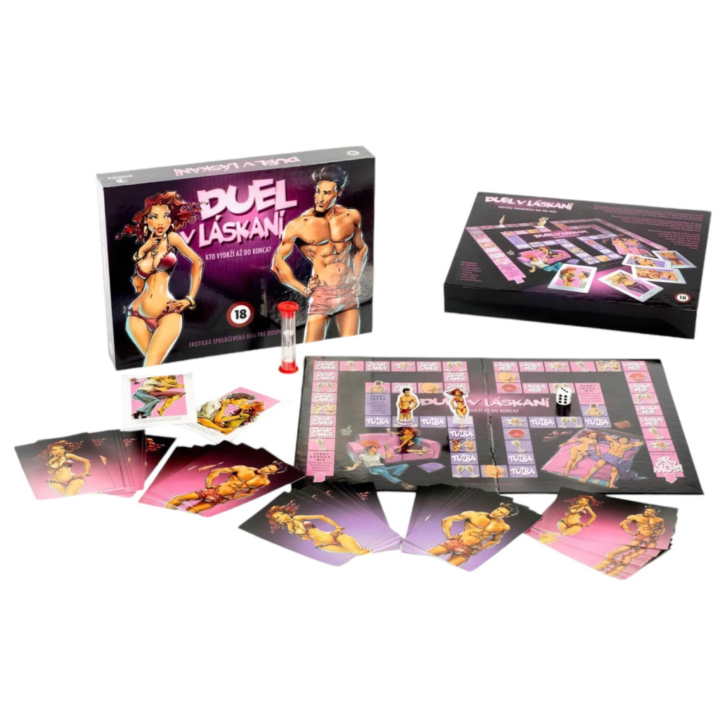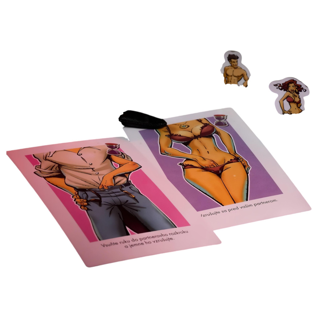 Erotická, spoločenská hra pre dospelých, plná vzrušenia s jedinečnou grafikou!Čaká na Vás láskanie v hravej forme s pikantnými úlohami. Výborný spoločník na spestrenie Vášho intímneho života a na prežitie horúceho večera.S touto hrou máte zaručený úspech u vašej polovičky.Garantované horúce chvíle!K hre odporúčame na vytvorenie správnej atmosféry: intímne osvetlenie, romantická hudba, fľaška dobrého vína alebo šampanského, sladké ovocie (jahody, hrozno), príjemný masážny olej.Priebeh hry:Hráči na hernom pláne musia plniť čím ďalej postupujú horúcejšie a vzrušujúcejšie erotické úlohy, aby si navzájom spôsobili čím väčšiu radosť a potešenie. Hra začína ľahšími zahrievacími úlohami, po ktorých nasledujú tie viac erotické, až napokon vyústia do sexuálneho aktu.Rastúca sexuálna túžba je v prípade dodržania pravidiel garantovaná, ale pozor, orgazmus nemôže dosiahnuť do skončenia hry ani jeden z hráčov. Ak by predsa len niektorý z hráčov dosiahol vyvrcholenie musí splniť všetky sexuálne priania svojho partnera.Hra je rozdelená na 3 zóny: „Zvádzanie”, „Túžba” a „Láskanie”. Každá zóna obsahuje svoje hracie karty.Hra je určená pre osoby nad ( 18 ) rokov!Hra obsahuje:-1 hraciu plochu-52 hracích kariet s úlohami-2 hracie figúrky-1 hraciu kocku-1 presýpacie hodinky-pravidlá hryHasználati útmutató letöltése (PDF)