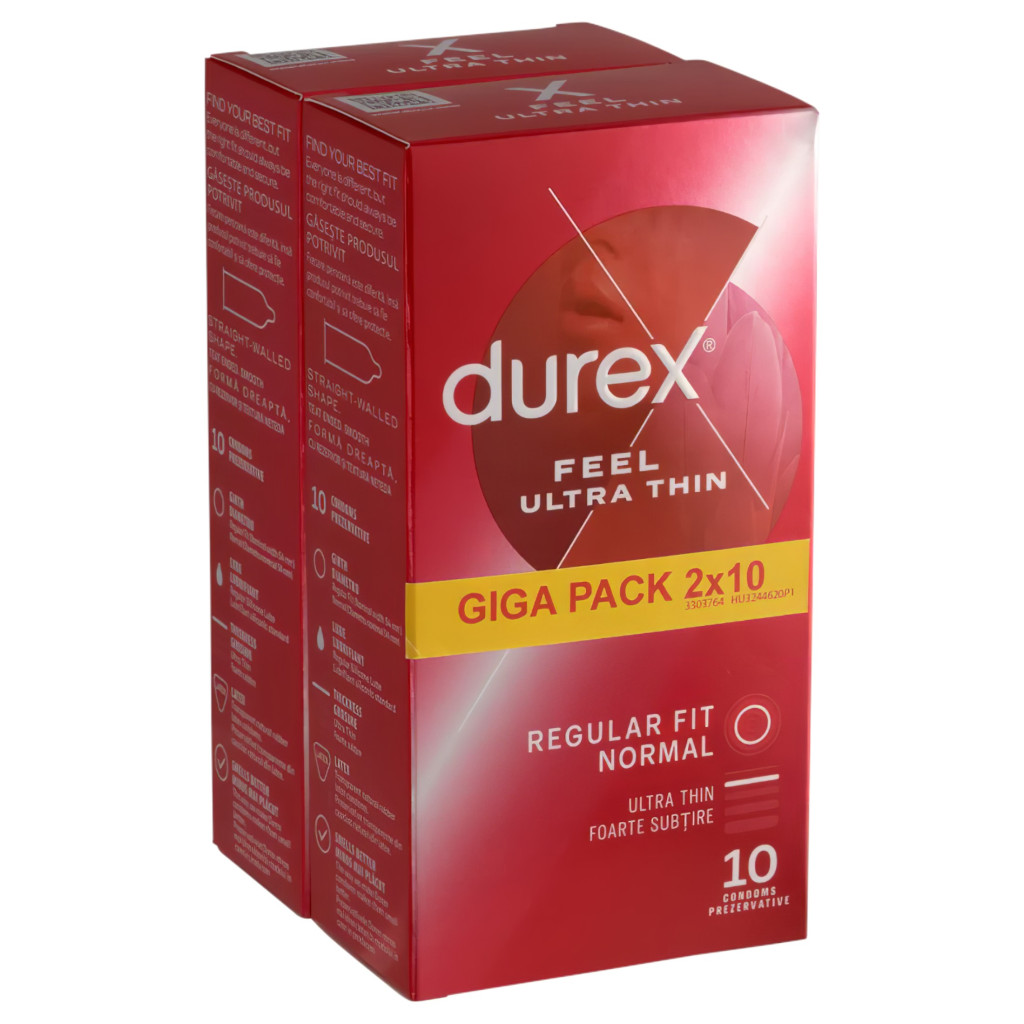 A csomag tartalma:2x10 db ultra vékony óvszerTerméktulajdonságok:Szín: ÁttetszőAnyaga: LatexSíkosítás: Szilikon alapú síkosítóval ellátvaKialakítás: Easy-on forma, ondótartállyalHossz: 195 mmÁtmérő: 54 mmVastagság: Ultra vékony, a csúcsnál 20%-kal vékonyabb,0,052 mm