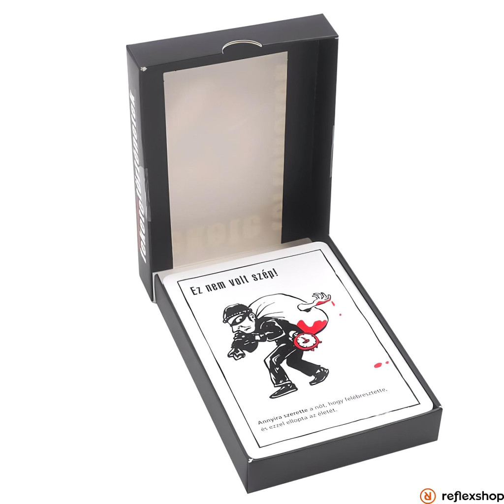 3. Ha a nyomozók rájöttek a történetre, a mesélő jutalmul olvassa fel a kártya hátlapján lévő szöveget, minden hátborzongató részlettel együtt. Gratulálunk, szép munka volt!