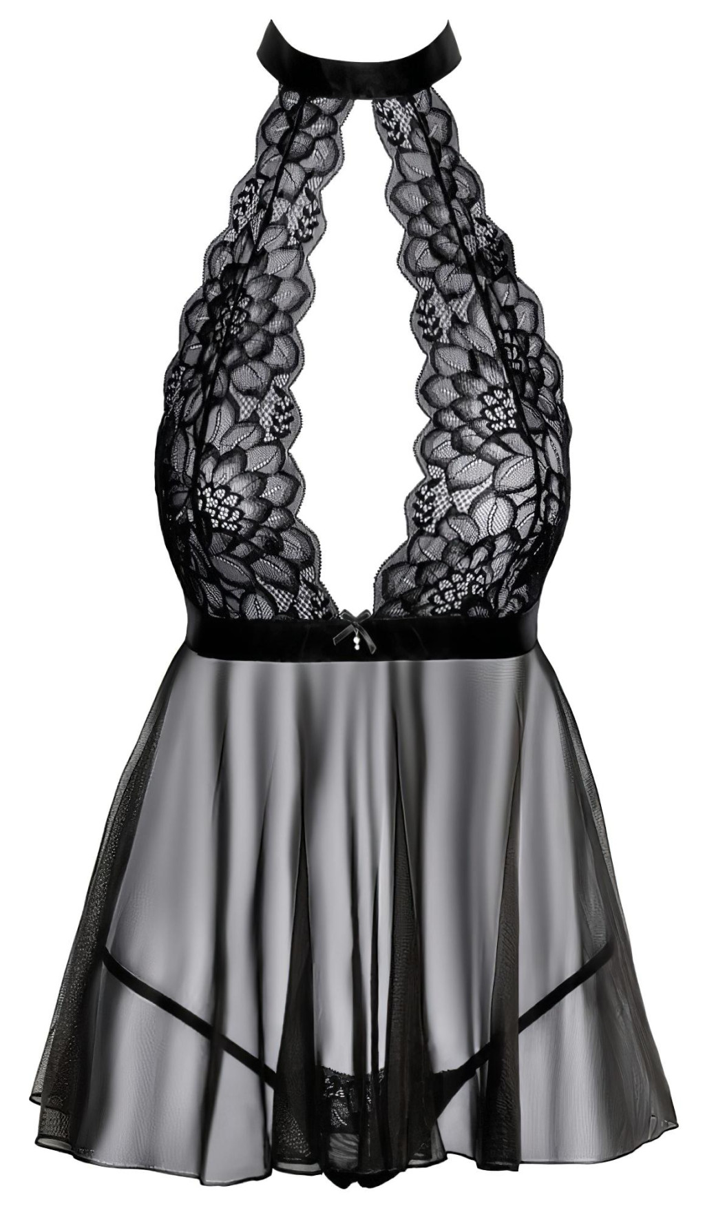 Kissable - nyakpántos, csipke babydoll (fekete)