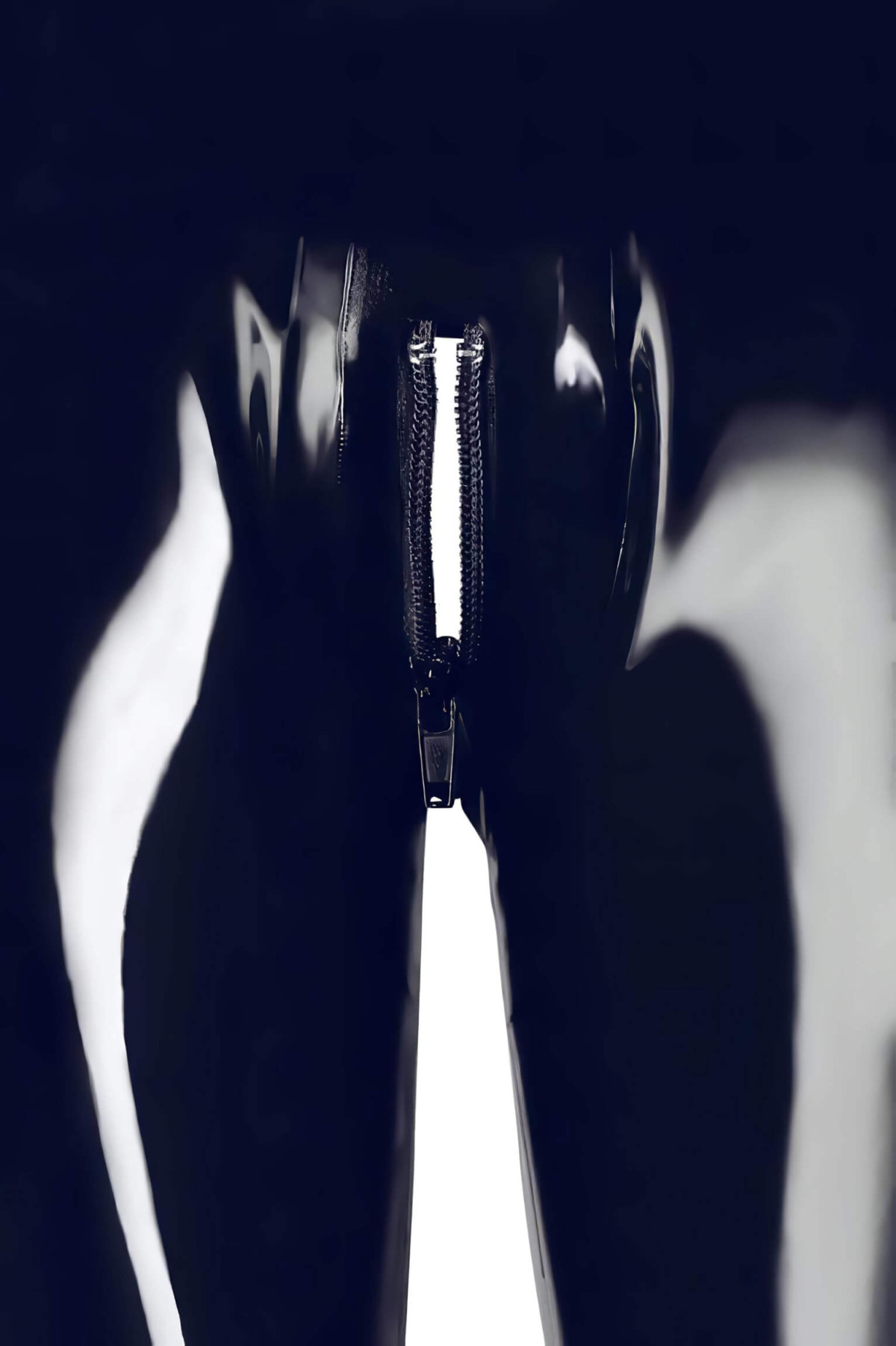 Különlegessége a kétutas cipzár, mely elöl középen kezdődik és egészen hátul, a popsinál ér véget, így a szeméremrész könnyedén szabaddá tehető, aktus közben is viselhető.