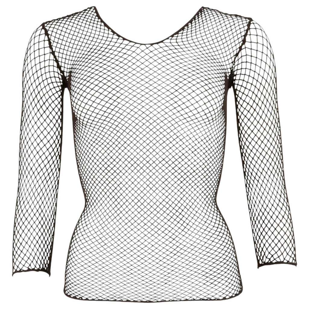 Nagyon rugalmas, nagyszemű, hálós anyagból készült női felső, kerek nyakkal, 3/4-es ujjakkal.Anyaga: 92% Polyamid, 8% Elasthan.Fekete színben.Mérete: egyenméret (S, M és L méretre egyaránt passzol).Egyéb kiegészítőket a csomag nem tartalmaz.