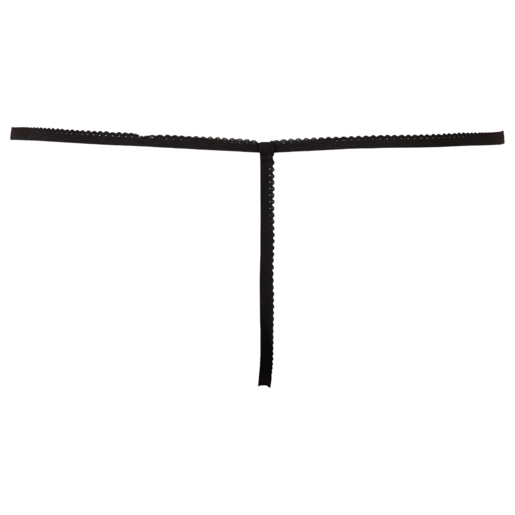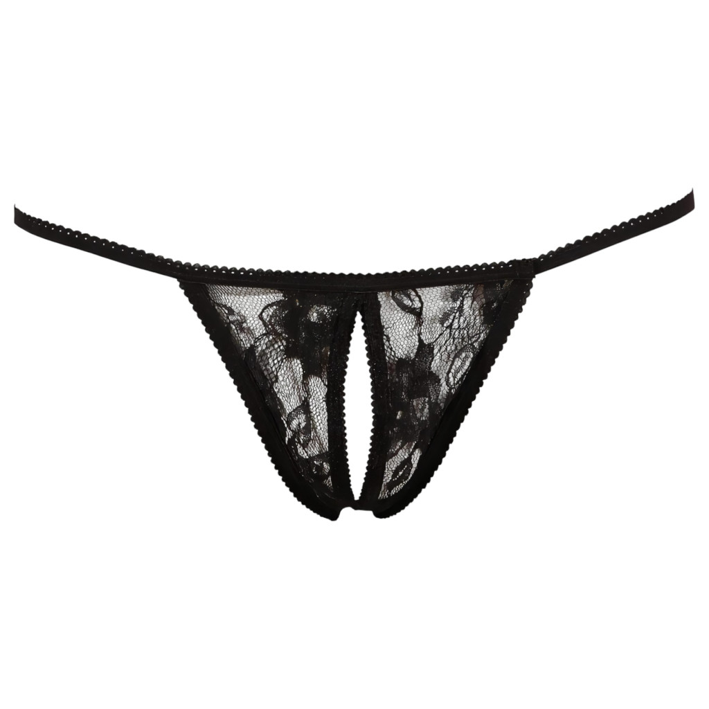 Rugalmas pántokkal, elöl teljesen nyitott kialakítással készült tanga, hátul T-fazonú kialakítással.Anyaga: 100% Polyester.Mérete: egyenméret(S-L: S, M és L méretre passzol). Fekete színben.
