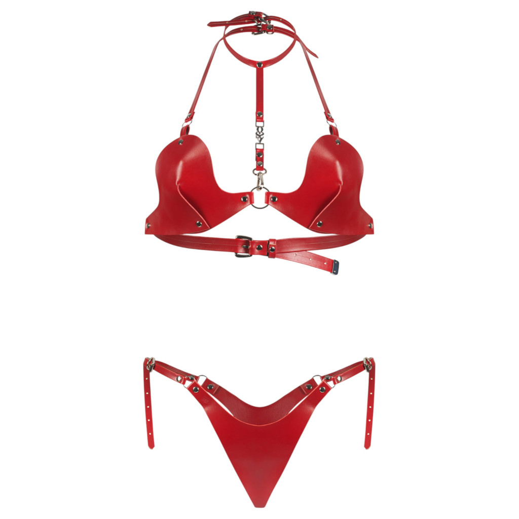 Obsessive Inferro - bőr hatású pántos melltartó szett (piros)