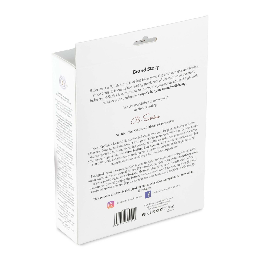 Sophia nem csupán egy játék, hanem egy szenvedélyes kaland kezdete. Akár magadnak, akár exkluzív ajándékként keresel személyes örömszerzőt, ez a dmuchana baba mindig ott lesz, hogy valóra váltsa a legintimebb álmaidat. Engedd, hogy Sophia inspirálja a fantáziád és feldobja a hálószobád hangulatát!