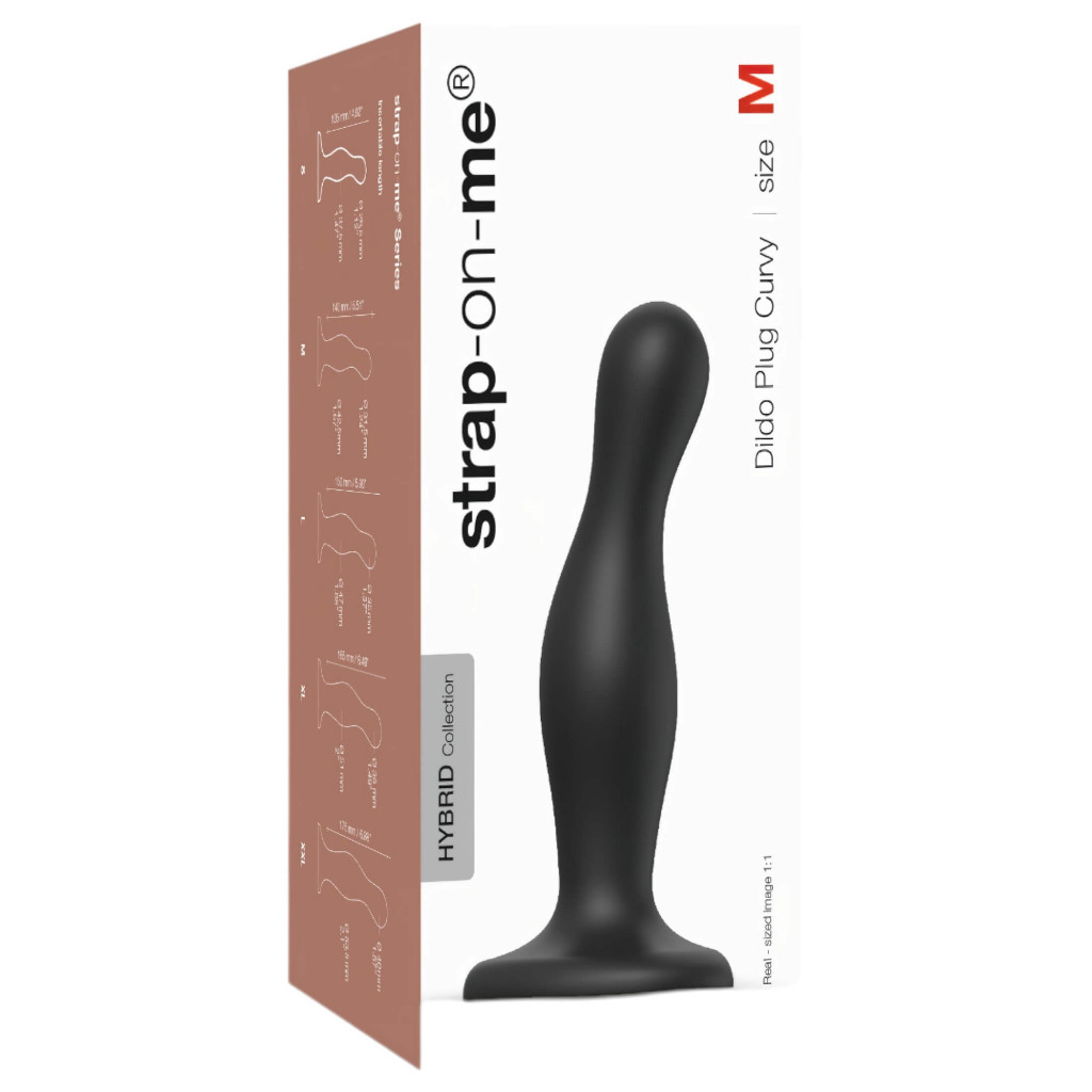 Strap-on-me Curvy M - hullámos, tapadókorongos dildó (fekete)