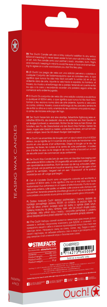 Engedd, hogy a vörös viasz teasing gyertyák elvarázsoljanak! Ez a négy darabos készlet tökéletes nyitánya az intim pillanatoknak, ahol a romantika és a játékosság egyetlen lángban találkozik. Készíts el egy különleges estét, ahol a gyertyák fénye és illata felforrósítja a hangulatot!