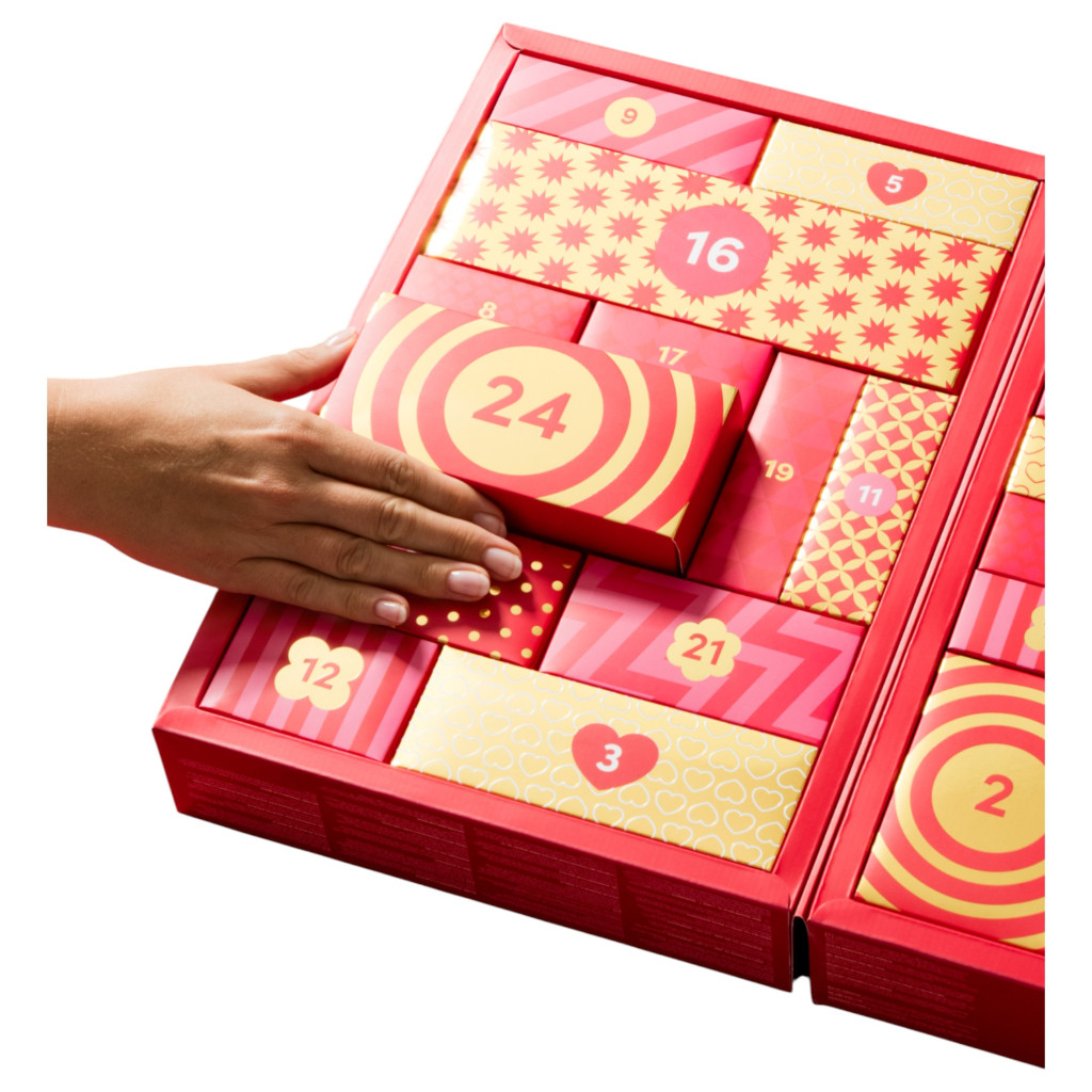 A csomag tartalma24 darab napi meglepetést rejtő rekesz:7 kiegészítő, ami a mini vibrátorral rezgő játékszerré tehető4 fiók férfi eszközt rejt, 5 pedig olyat, amit nőknek készítettekPáros kiegészítők, mint például bilincs és szemkötő - 6 kezdő BDSM játékszer3 szexpatika kiegészítőA legnagyobb értékű fiókokban egy We-Vibe párvibrátor és egy Womanizer csiklóizgató rejlikTerméktulajdonságokMárka: LovehoneyTípus: Adventi naptár, 24 részesBelső érték: kb. 550 €Anyagok: szilikon, ABS, TPE, textil és fémCélcsoport: pároknak és egyedülállóknakFelhasználás: közös játékhoz, szóló élvezetekhez, ajándékozásra