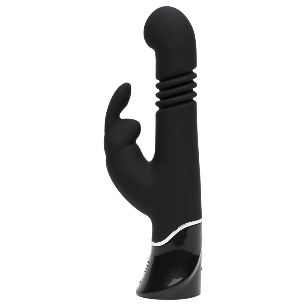 Tulajdonságok:-bőrbarát, ruganyos anyag-bársonyos tapintás-fel-le mozgó, lökő funkció-G-pont és csiklóstimuláció-két erős motor-nyuszis, rezgő csiklóizgató kar-beépített Lithium-Ionos akkumulátor-3 lökési sebesség-12 rezgésmód-külön vezérelhető motorok-cseppálló, könnyen tisztítható-teljes hossz (alapállapotban): 23cm-elmozdulás: kb. 2,5cm-átmérő: 3,4-3,9cm-csiklókar mérete: kb. 10 x 3cm-fekete színbenAnyaga: ABS, Szilikon, PU-bevonattal (EU-rendeletnek megfelelő, phthalát-mentes).A töltéshez szükséges USB-kábelt a csomag tartalmazza.