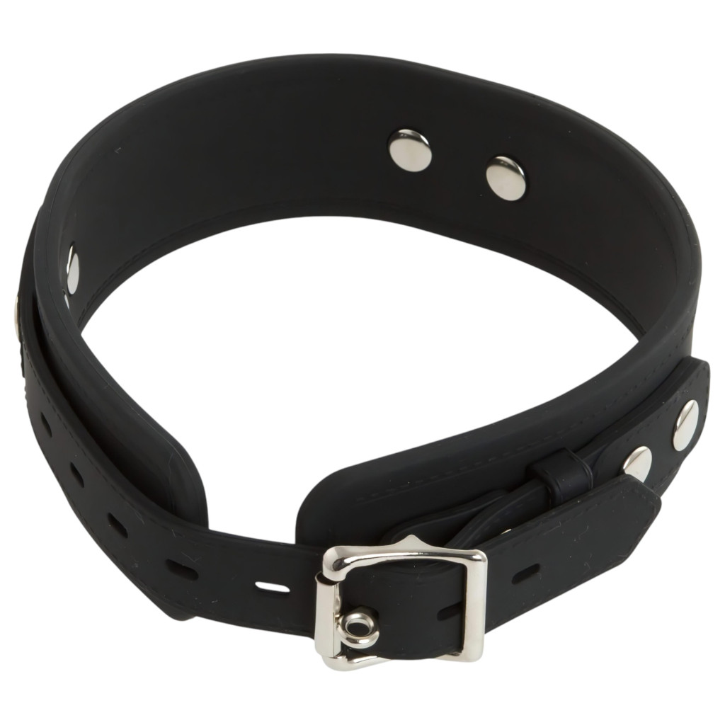 Kb. 63cm hosszú, szilikonból készült nyakörv, fém rögzítő karikával és hozzá karabinerrel csatlakozó fém pórázzal, mely csuklópántban végződik. A nyakpánt mérete fém csattal állítható.