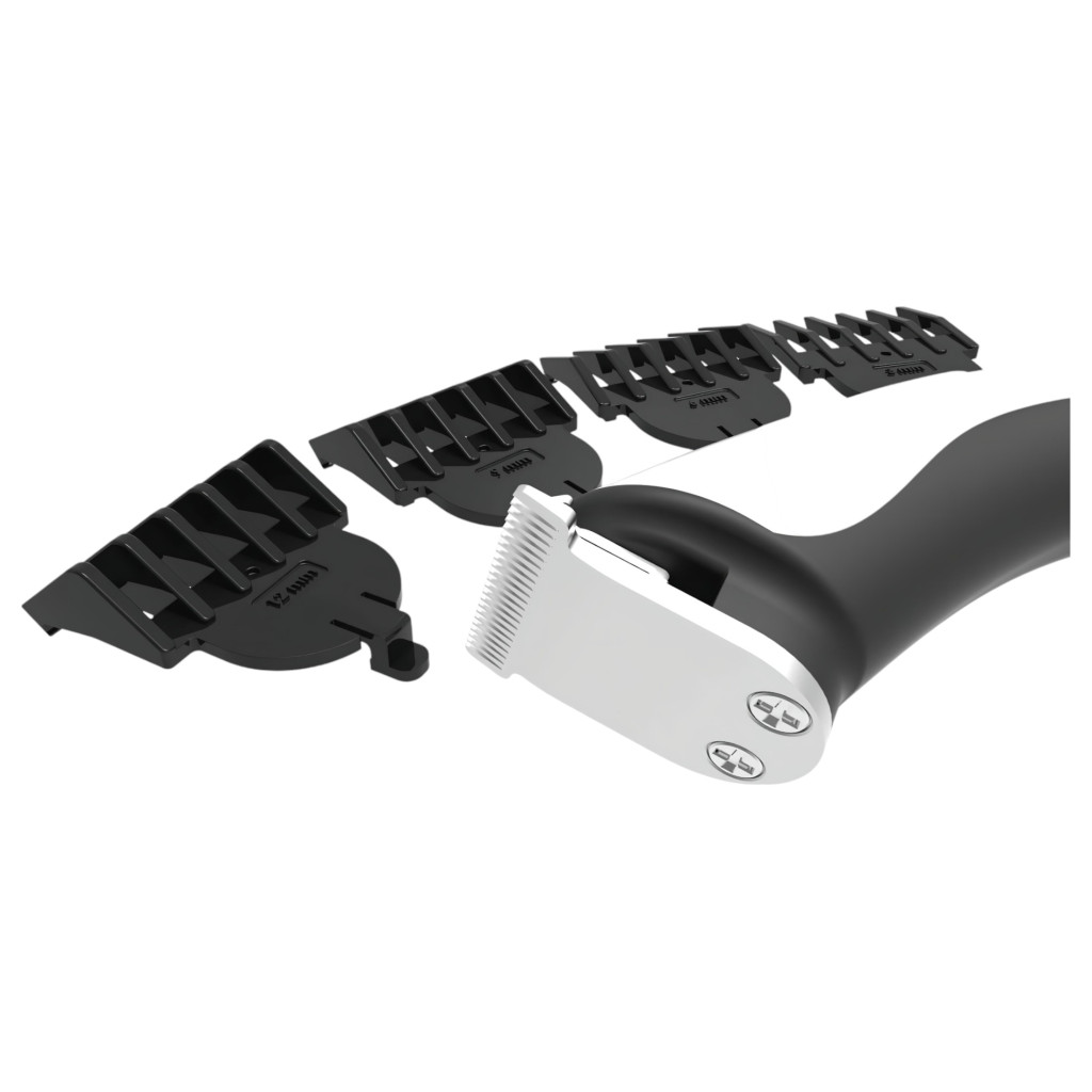 Hossz: 16cm.Szélesség: 4cm.Anyag: ABS, fém.A szett tartalma:-1db akkus borotva-1db 3mm-es feltét-1db 6mm-es feltét-1db 9mm-es feltét-1db 12mm-es feltét-1db USB töltőkábelMerev, kiváló minőségű tároló táskában.