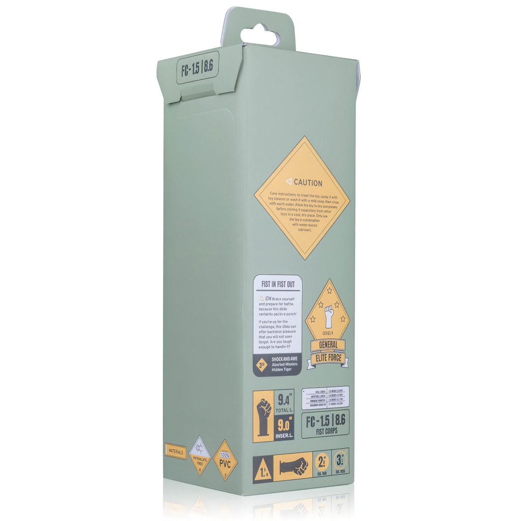 Tulajdonságok:-ruganyos, kicsit tapadós, jó tartású anyag-anális és vaginális örömszerzéshez is tökéletes-ököl forma, összezárt ujjakkal-haladó: anális és vaginális felhasználásra-kiszélesedő talp-erős tapadókorong-barázdált felszín a csukló részen-vízben is használható-könnyen tisztítható-teljes hossz (tapadókoronggal együtt): 22cm-hossz (korongig): kb. 20,5cm-ajánlott behelyezési mélység (kézfej hossza): 12,5cm-min. átmérő: 8,6cm-fekete színAnyaga: PVC (EU-rendeletnek megfelelő, phthalát-mentes).