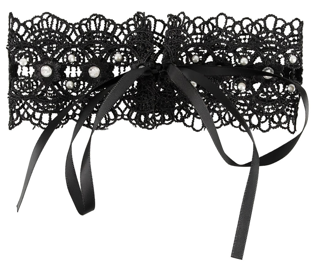 Cottelli - Gyöngyös, strasszos csipke gallér (fekete)