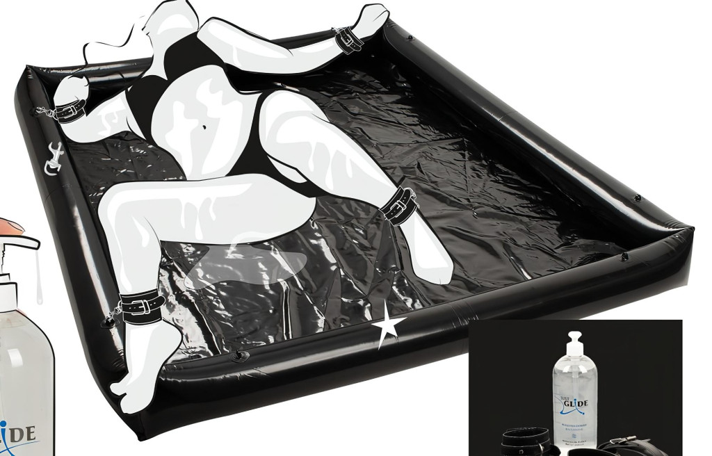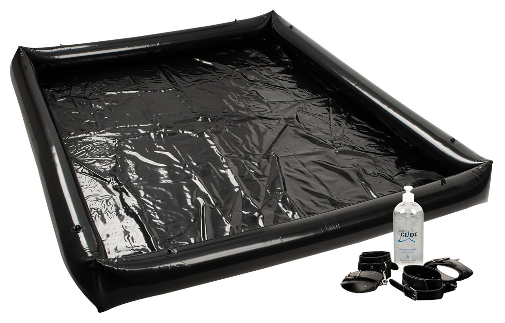 Felfújható medence, mely tökéletes kiegészítő, sikamlós játékokhoz, vad erotikus, csúszkacsatákhoz!A legjobb része pedig a 4db állítható méretű bilincs, melynek köszönhetően partnered nem szabadulhat a legsikamlósabb jelenetek elől!