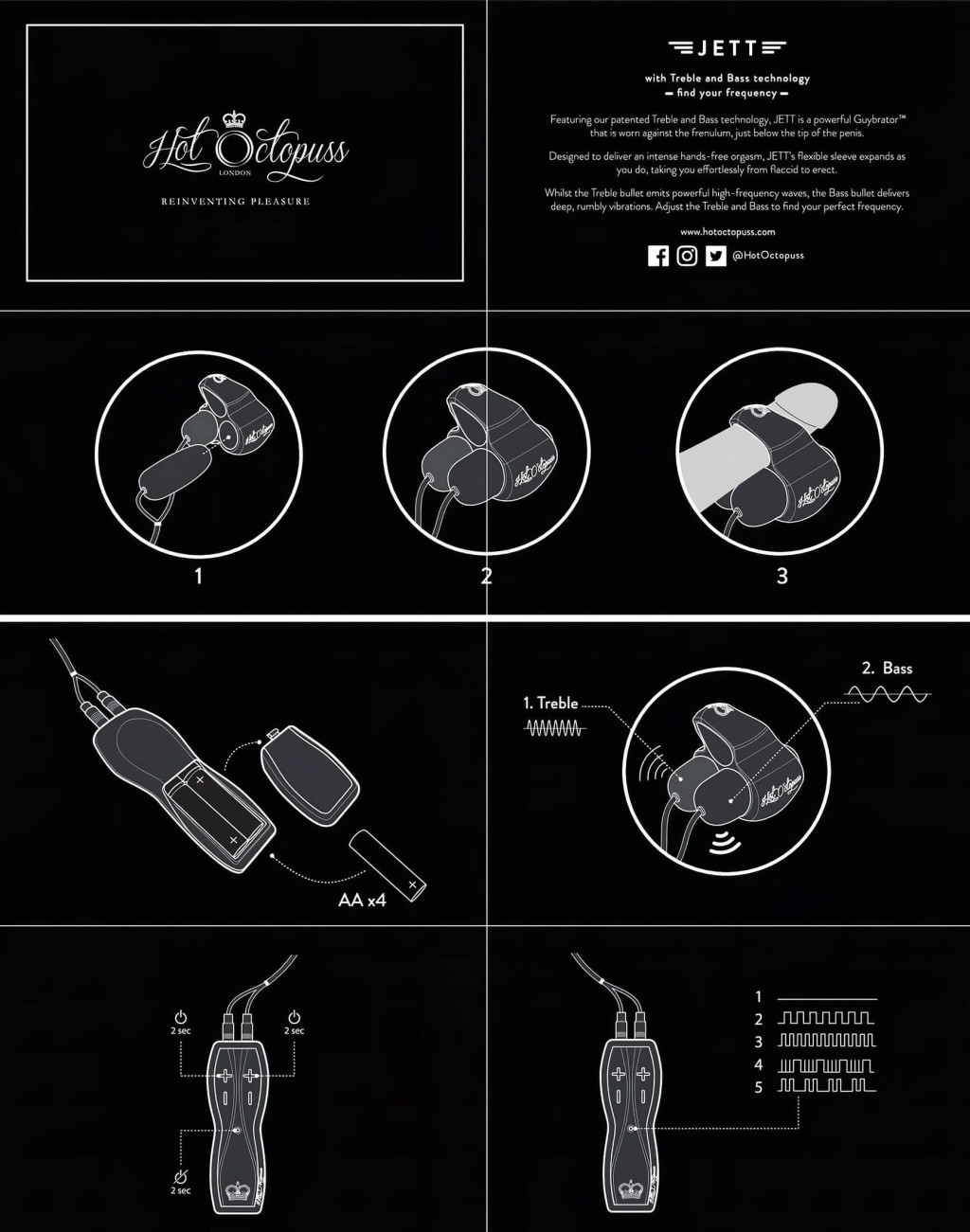 HOT Octopuss JETT - 2 motoros makkvibrátor (fekete)