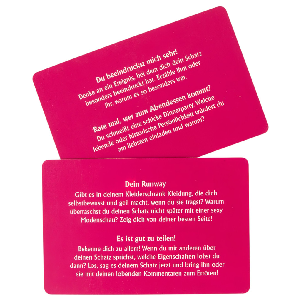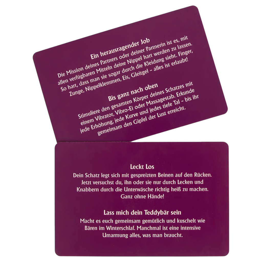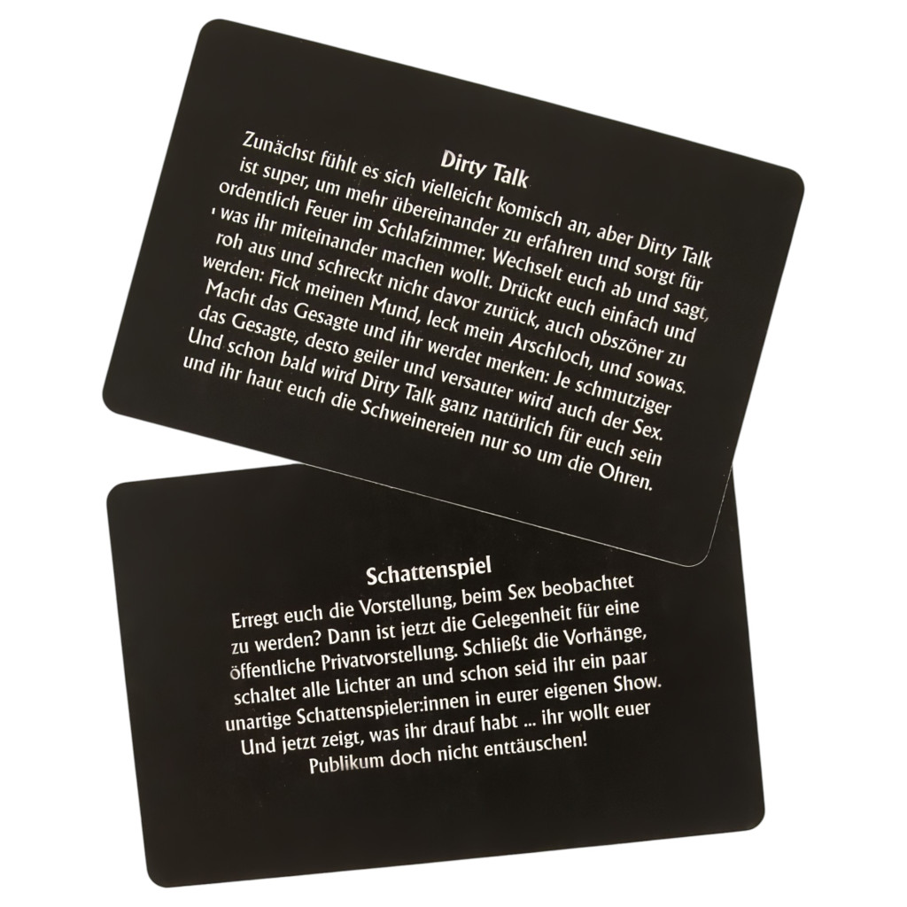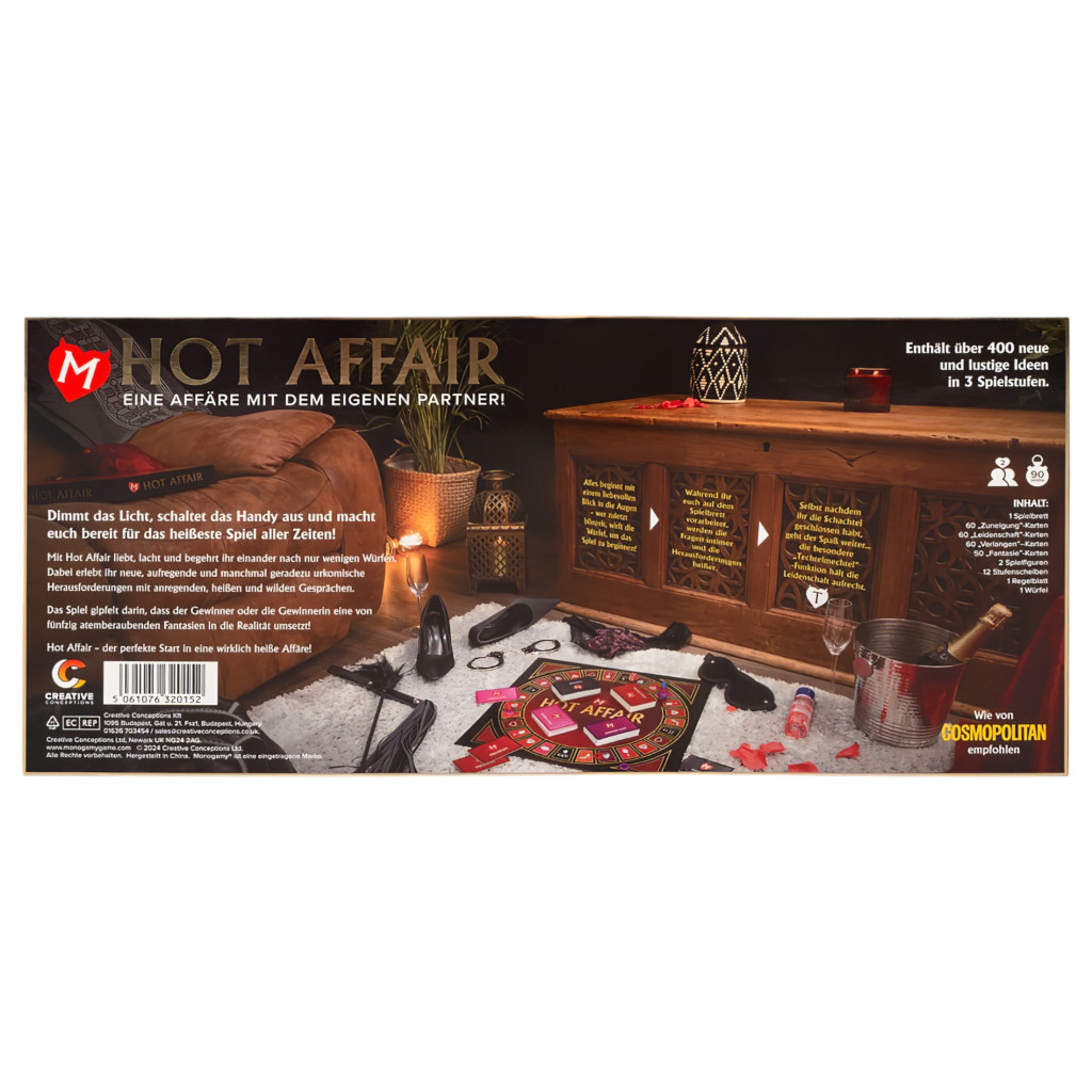 A Monogamy egy igazán szenvedélyes viszony a pároddal, tökéletes eszköze annak, hogy kapcsolatotokban még magasabb szintre emeljétek a szexualitást!Egy kétszemélyes, felnőtteknek szóló, maximálisan szórakoztató, romantikában, izgalmakban, de legfőképpen erotikában gazdag párjáték, mely biztos élvezetet és intim pillanatokat nyújt a játékosoknak, megfűszerezve ezzel a párkapcsolatot, és még közelebb hozva egymáshoz a szerelmeseket!Nincs más feladatotok, mint megteremteni a megfelelő hangulatot a környezetetekben, lágy zenével, gyertyafénnyel, majd mindezek után néhány dobás a dobókockákkal és elmerülhettek a Monogamy-ban, mely a szerelem, a szenvedély és a bujaság társasjátéka.A játék során több, mint 390 szórakoztató feladat vár rátok, három különböző szinten (Intim, Szenvedély, Forró). Ahogy a játék halad előre vidám párbeszédekben és izgalmas feladatokban lesz részetek, mialatt egyre többet tudtok meg egymás testéről, elméjéről, egyre közelebb érve ahhoz a felismeréshez, hogy mi az, ami a párotokat igazán lázba hozza! A szinteken előrehaladva ahogy a hangulatotok egyre fokozódik, úgy válnak a feladatok is egyre intimebbekké, szenvedélyesebbekké, forróbbakká!Mi is rejtőzik a dobozban?:-1db játéktábla-2db bábu-12 színes karika (4db pink, 4db lila, 4db piros)-1db dobókocka-50db Fantázia kártya-65db Intim kártya-65db Szenvedély kártya-65db Forró kártya-1db játékleírásNémet nyelvű változat.Használati útmutató letöltése (PDF)