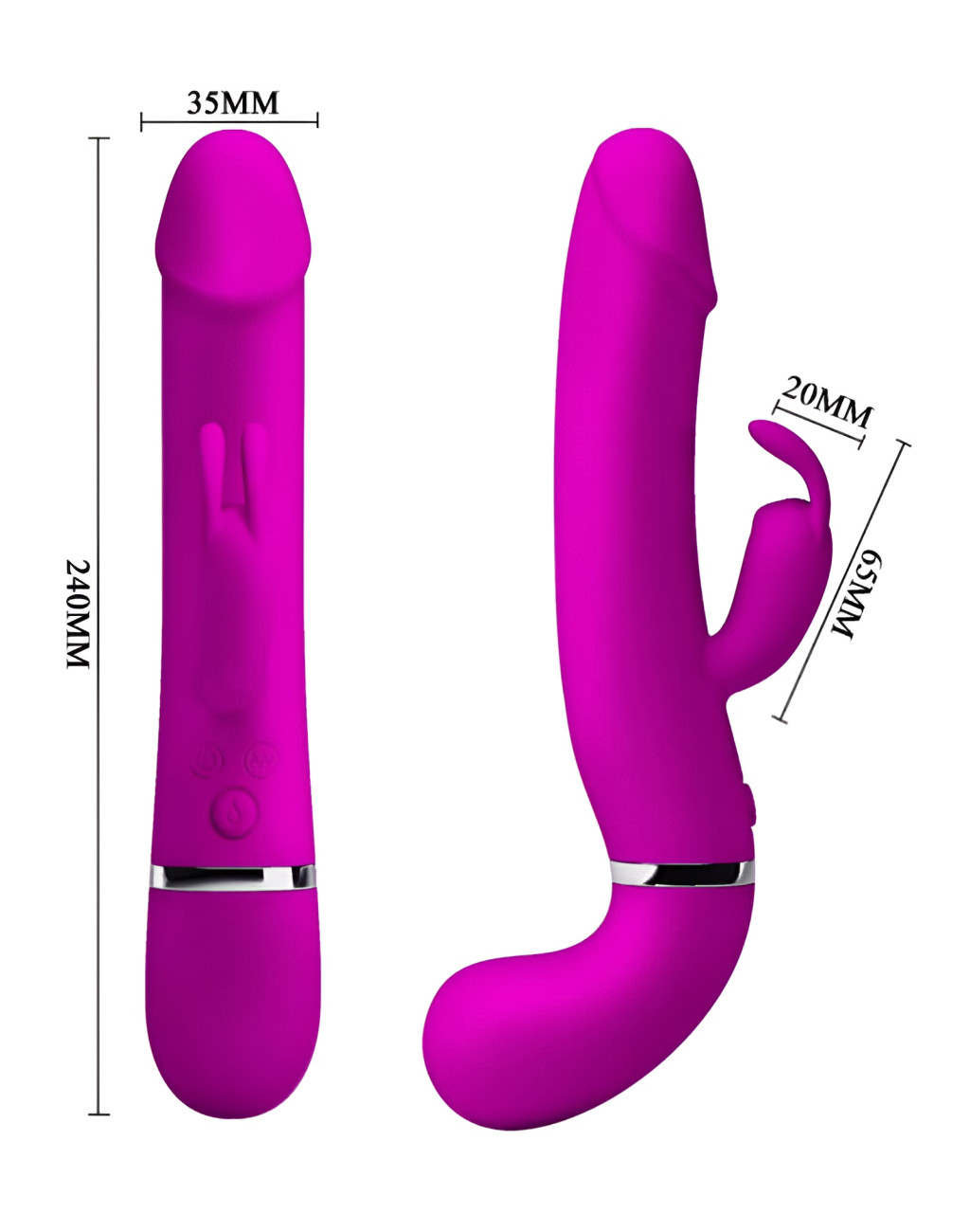 Tulajdonságok:ruganyos, bőrbarát anyagbársonyos tapintáshajított G-pont formahangsúlyos, flexibilis fejrezgő, csiklóizgató karnagy teljesítményű motorextra erős rezgés12 rezgésmód100% vízálló kialakításújratölthető akkumulátorteljes hossz: 24cmmaximális átmérő: 3,5cmcsiklókar mérete: 3,5 x 24cmanyaga: ABS, Szilikon (EU-rendeletnek megfelelő, phthalát-mentes).
