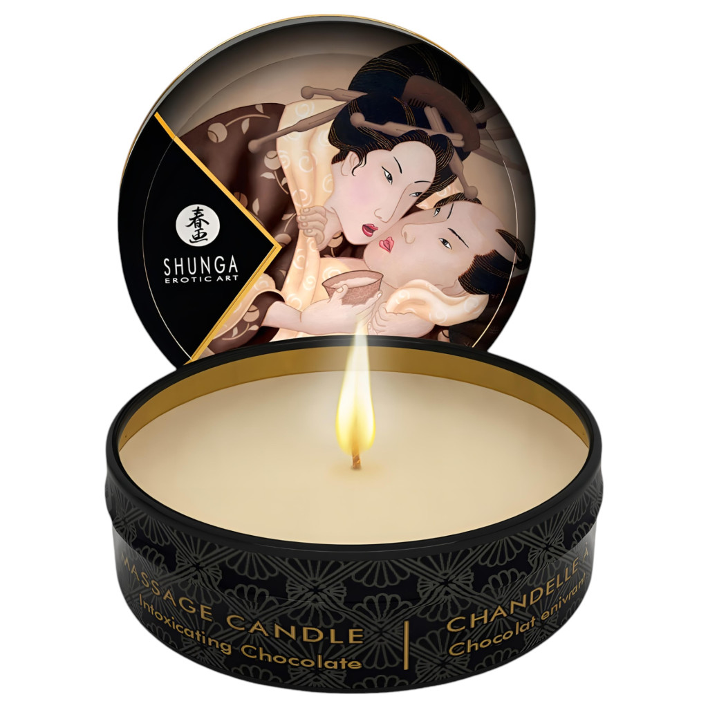 Masszázsgyertya a csokoládé ínycsiklandó, minden érzékszervet átható illatával, prémium minőségben!Kozmetikai minőségű, 100%-ban természetes olajok keverékéből készülő gyertya, mely a kanóc meggyújtását követően inspiráló masszázsolajjá alakul. Kb. 20 perc elteltével el kell fújni a lángot és az olajat kedvesünk hátára, vagy a markunkba locsolni. Ezután következhet a lazító, vagy épp minden érzéket felkorbácsoló, különleges masszázs. A tápláló, hidratáló összetevők kellemesen puhává, selymessé varázsolják és táplálják a megfáradt bőrt.Tulajdonságok:-ideális, alacsony olvadáspont-édes csokoládé illat-hidratálja, táplálja, puhítja a megfáradt bőrt-hosszantartó, csúszós állagot ad-felfrissíti a bőrt, nem hagy zsíros utóérzetet-nem tömíti el a pórusokat-égési idő: akár 40óra30ml-es visszazárható fém tégelyben, látványos, színes, a távol kelet hangulatát idéző dizájnnal.