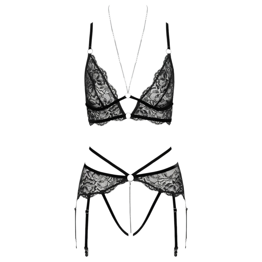 / Abierta Fina - nyitott, csipke melltartó szett (fekete)