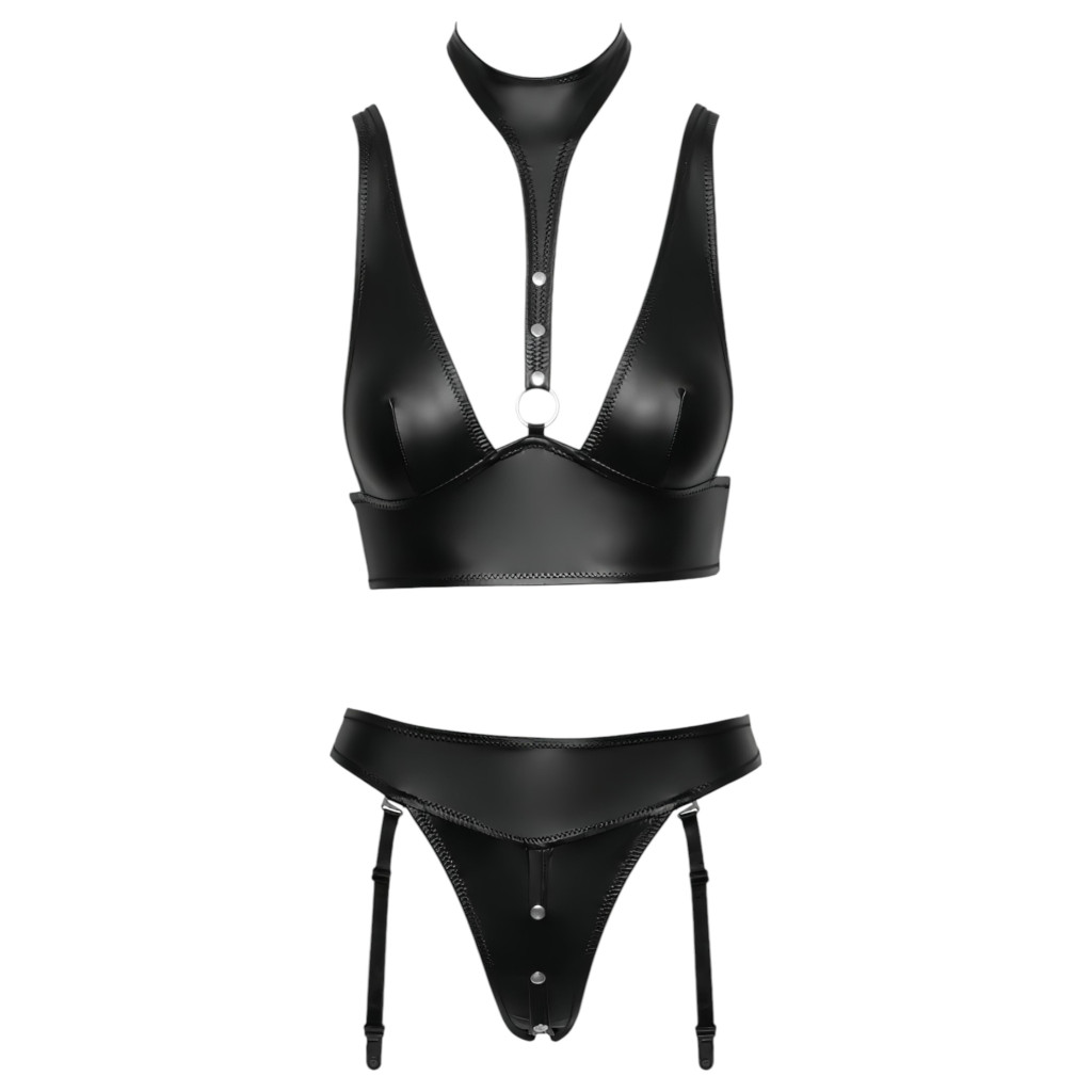 / Cottelli Bondage - fényes melltartó szett bilincsekkel (fekete)