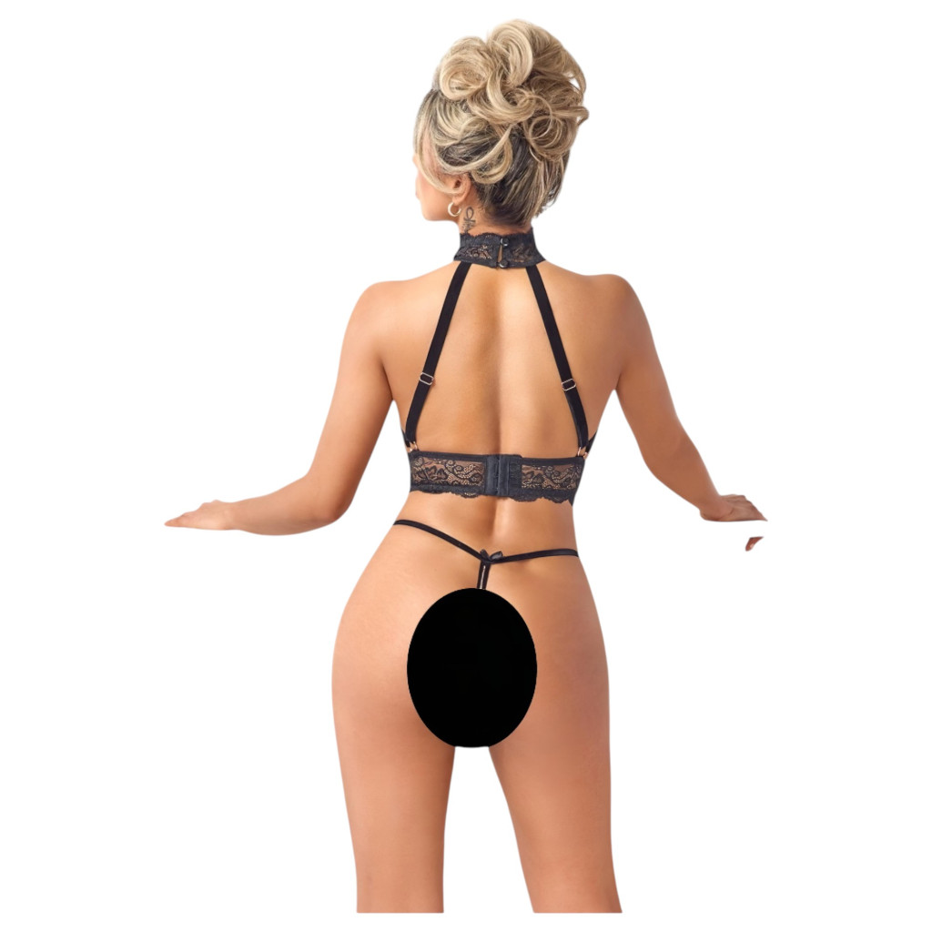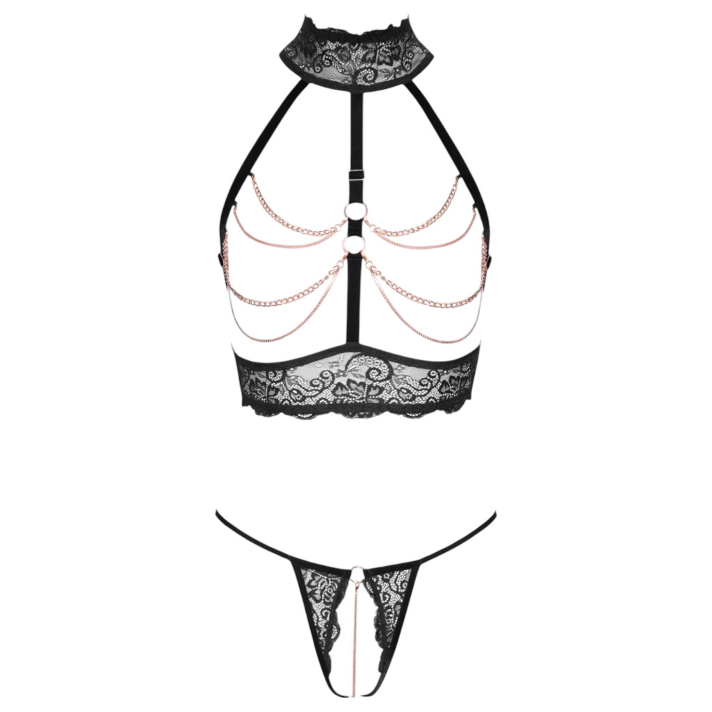 Abierta Fina - láncos nyitott fehérnemű szett (fekete)