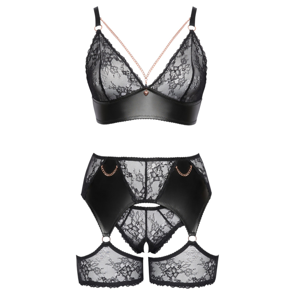 Terméktulajdonságok – Cottelli Curves – csipkés, bőrbetétes melltartó szett (fekete)