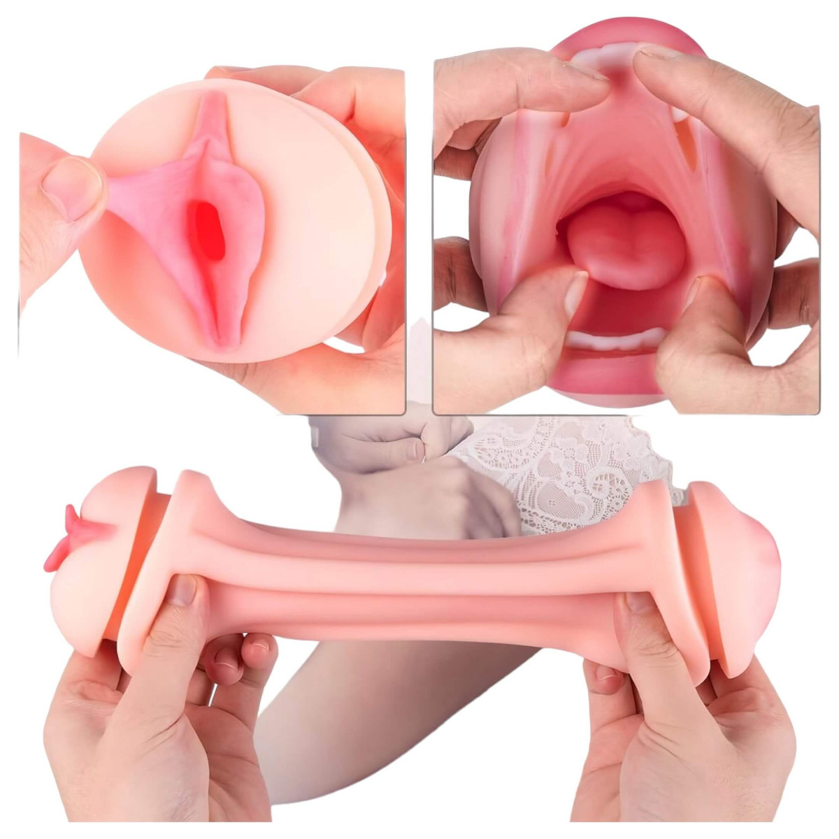 Vibeconnect - élethű száj és műpunci maszturbátor (natúr-fekete)